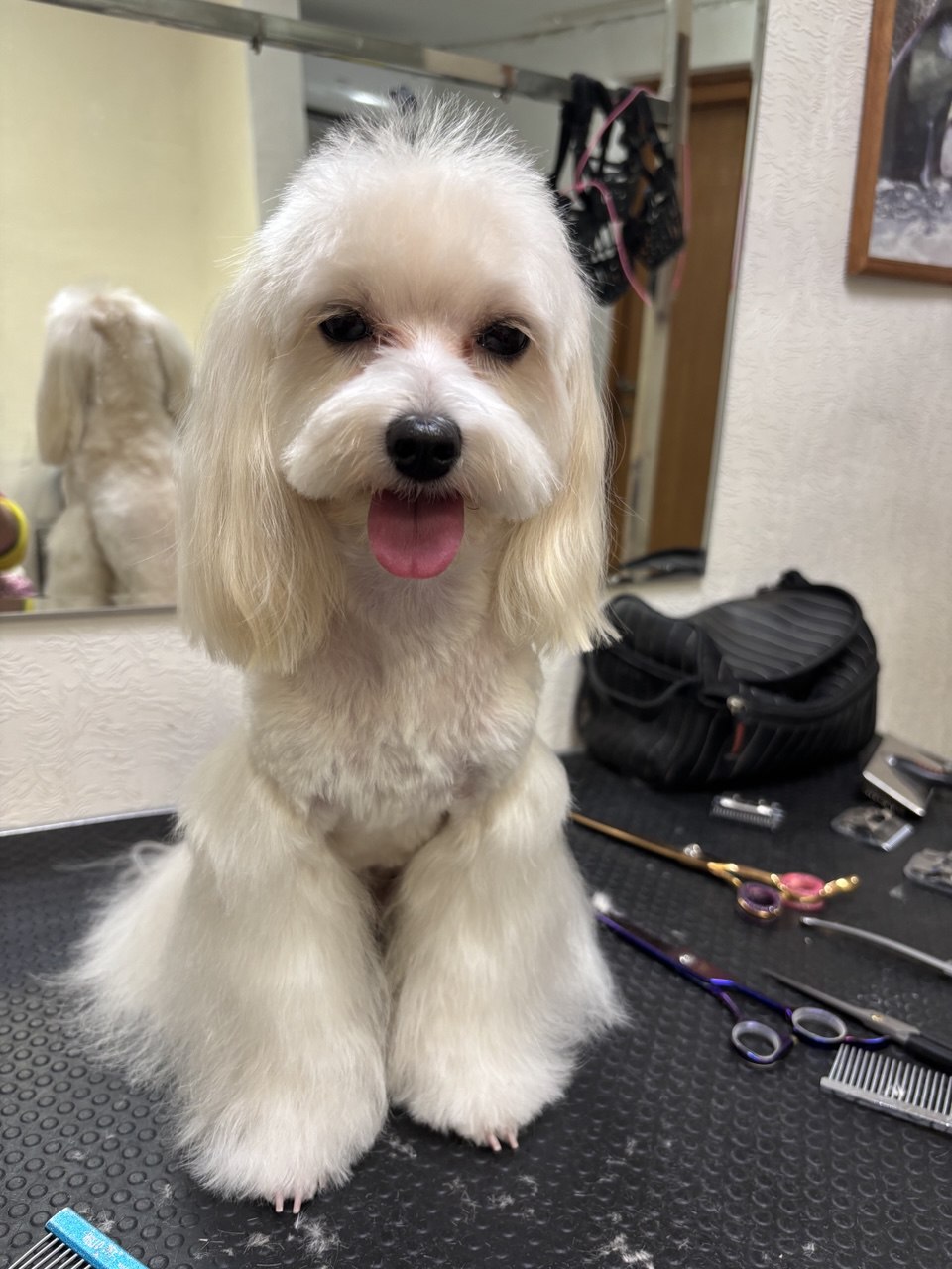 Огромное спасибо за модную стрижку моего пёсика, он обычно очень нервничает, когда с ним что-то делают, а тут стоял спокойно и даже не нервничал, сразу видно, что работает профессионал.